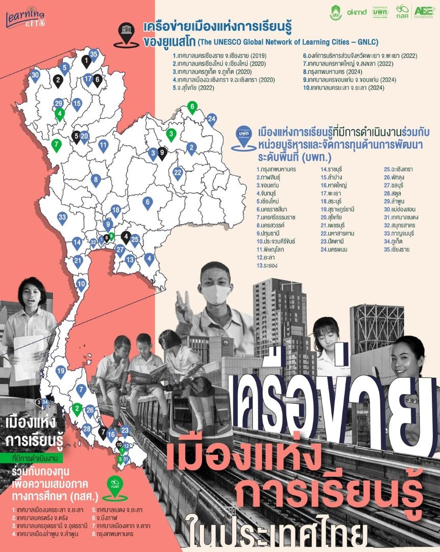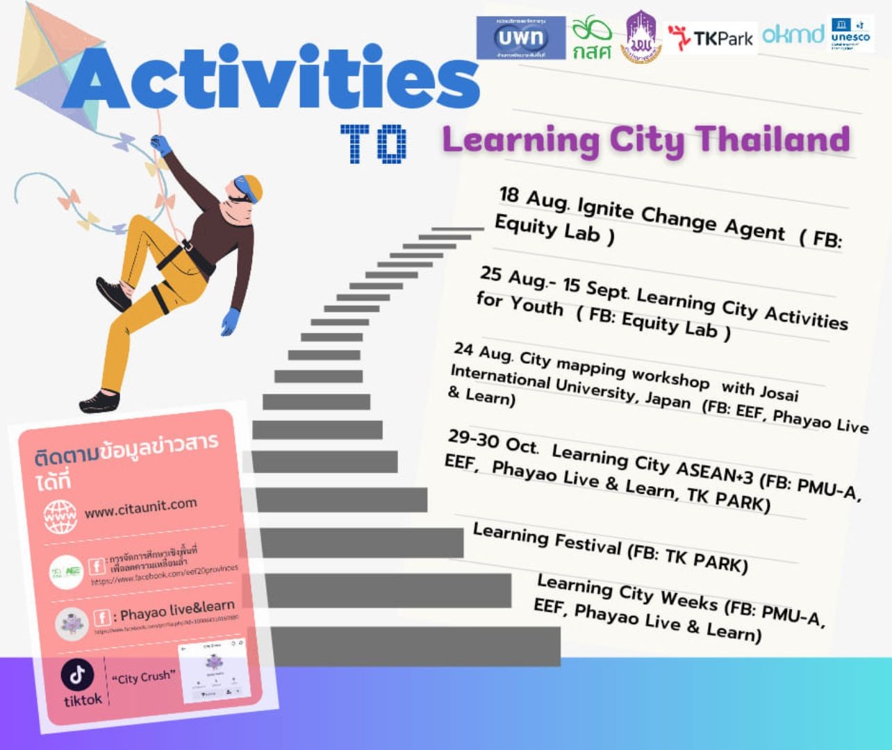 โครงการพะเยาเมืองแห่งการเรียนรู้ (Phayao Learning City) ภายใต้โครงการ ‘การเสริมสร้างทักษะการเรียนรู้ตลอดชีวิต’ โดยมีเป้าหมายเพื่อเตรียมความพร้อมให้ประชาชนสามารถรับมือกับความไม่แน่นอนในอนาคต ภูมิปัญญาท้องถิ่น ได้ถูกนำมาประยุกต์ใช้เพื่อสร้างอาชีพและรายได้ที่ยั่งยืน ความร่วมมือระหว่างเทศบาลเมืองพะเยา องค์การบริหารส่วนจังหวัด และมหาวิทยาลัยพะเยา ทำให้โครงการนี้มุ่งเน้นการพัฒนาเมืองเพื่อยกระดับคุณภาพชีวิตและรายได้ของประชาชน โครงการดังกล่าวได้จัดทำ “ต้นแบบการเรียนรู้ภูมิปัญญาท้องถิ่นกว๊านพะเยา” (Kwan Phayao Local Wisdom Learning Model) ซึ่งบูรณาการแนวคิดการออกแบบเชิงสร้างสรรค์ (Design Thinking) เข้ากับองค์ความรู้ทางวิชาการ นำไปสู่การจัดทำโครงการ UP to Upskill/Reskill/New Skill เพื่อให้การศึกษาแก่แรงงานนอกระบบ พร้อมมอบประกาศนียบัตรรองรับอาชีพใหม่ ปัจจุบัน โครงการพะเยาเมืองแห่งการเรียนรู้มีภาคีความร่วมมือ 12 แห่ง ทั้งภาครัฐและเอกชน และได้รับการยอมรับให้เป็นเมืองต้นแบบในเครือข่ายเมืองแห่งการเรียนรู้ของยูเนสโก (UNESCO GNLC) โดยมีเป้าหมายในการส่งเสริมการเรียนรู้ตลอดชีวิต ลดความเหลื่อมล้ำ และสร้างความเป็นธรรมทางสังคม”