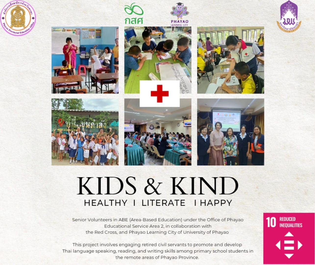 Kids & Kind: อาสาสูงวัยใน ABE กสศ. ร่วมกับ สำนักงานศึกษาธิการจังหวัดพะยา เหล่ากาชาด และ Phayao Learning City มหาวิทยาลัยพะเยา นำข้าราชการเกษียณอายุเข้าร่วมส่งเสริมและพัฒนาการพูด อ่าน เขียนภาษาไทย แก่นักเรียนชั้นประถมในพื้นที่โซนหลังเขาของจังหวัดพะเยา การจัด Cross Learning Session ทำให้เกิดปฏิสัมพันธ์ระหว่างคนต่างวัย ข้าราชการเกษียณได้เห็นคุณค่าในตนเอง เด็กนักเรียนที่ด้อยโอกาสมีโอกาสเข้าถึงการจัดการเรียนการสอนที่มีคุณภาพ
